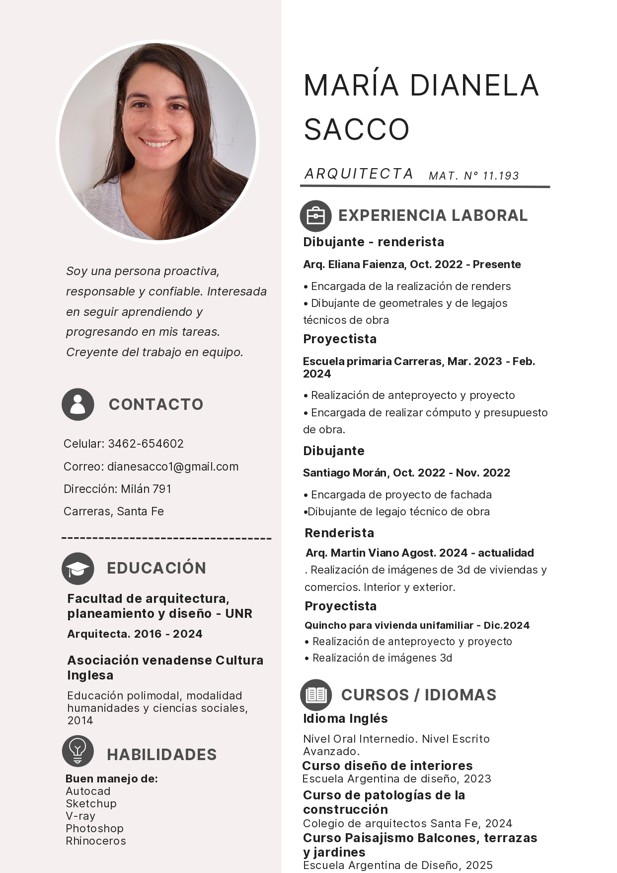 Soy la arquitecta Dianela Sacco, graduada de la Universidad Nacional de Rosario.